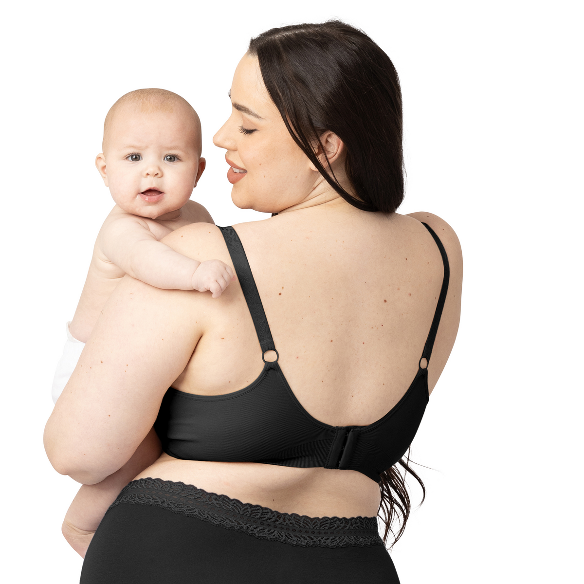 EASY NURSING ACCESS - One-handed, clip-down cups allow for quick access for nursing or skin-to-skin contact with baby. Plus, this nursing bra’s adjustable straps and hook-back closure ensure a great fit for every body type!